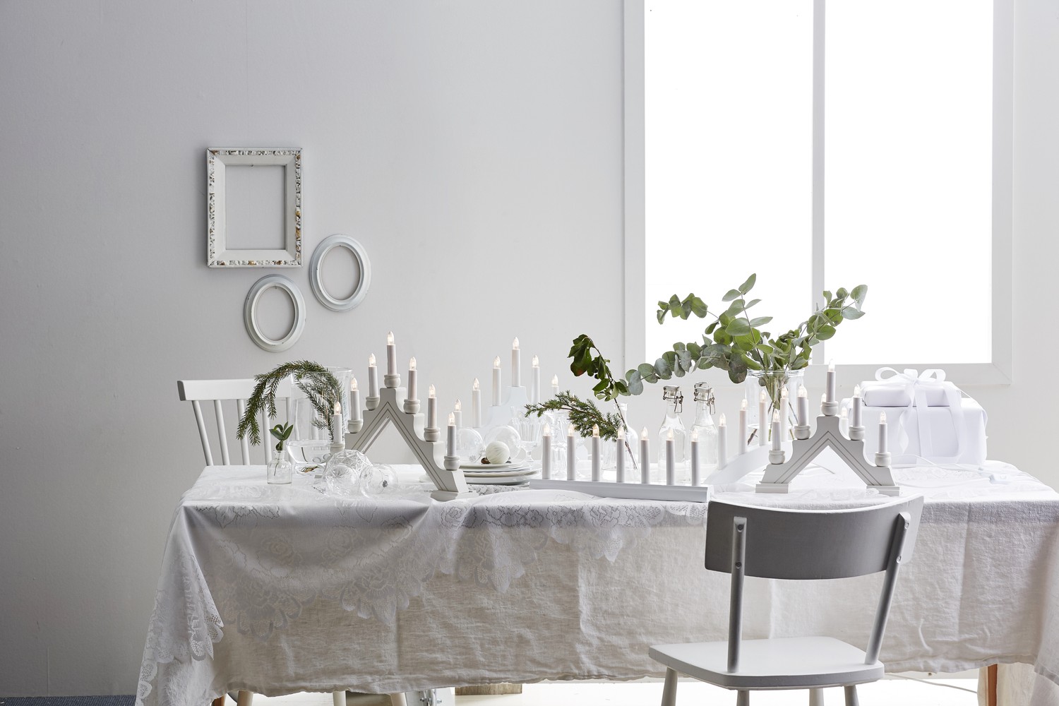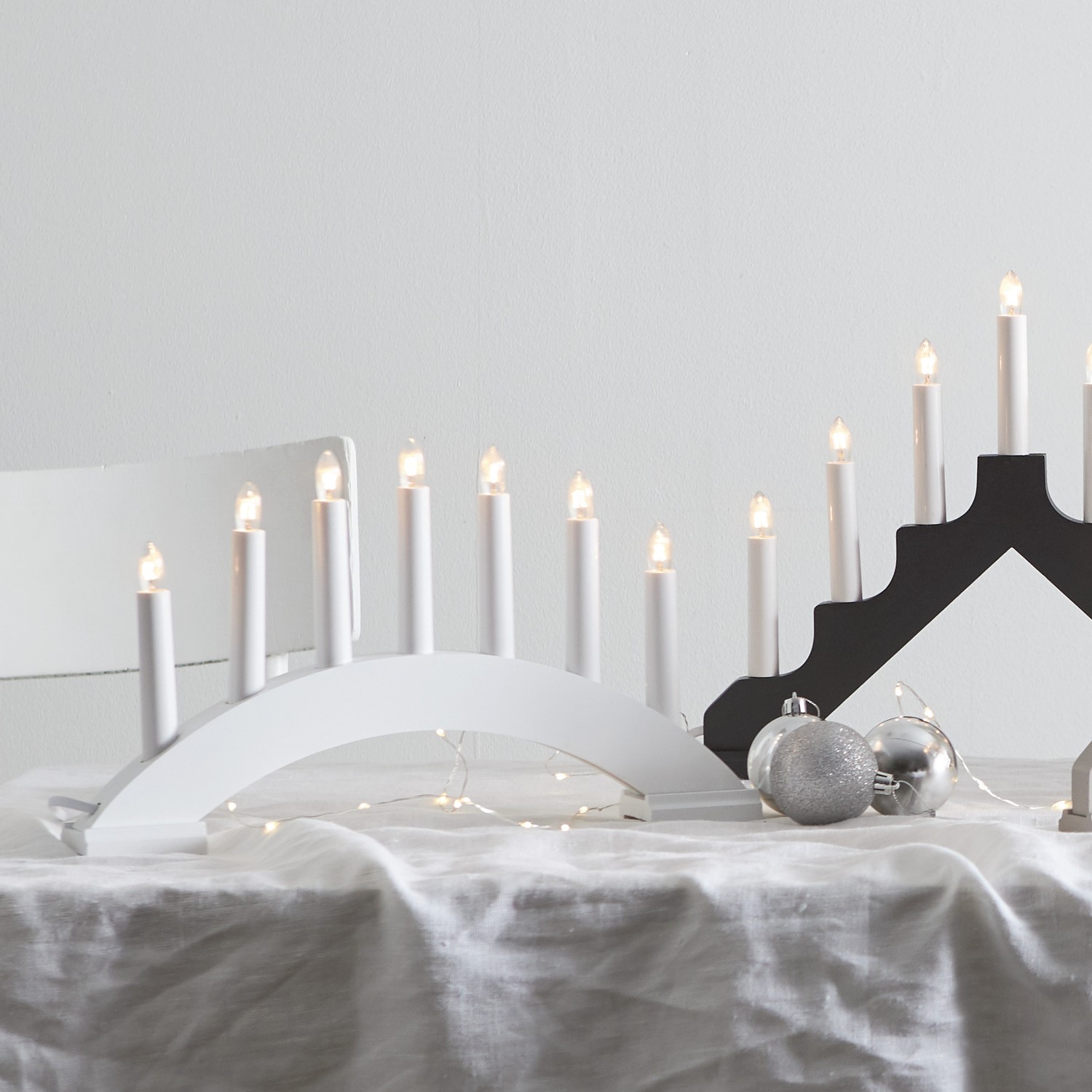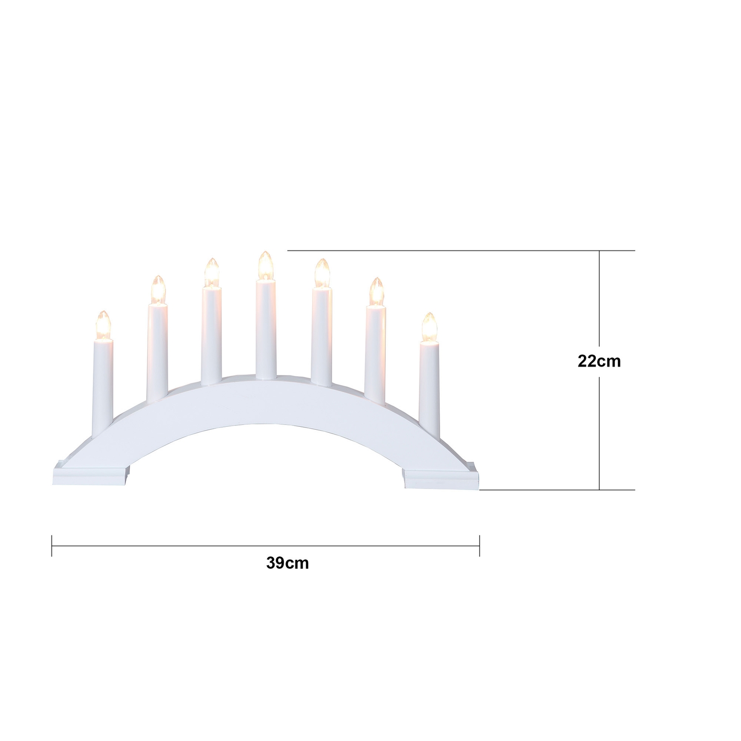 Vit träljusstake i bågform med 7 ljuskällor. En vacker ljusstake med härligt sken. Placera ljusstaken exempelvis i fönstret för att skapa en härlig adventstämning i hemmet.